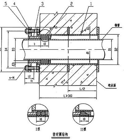 本公司生產(chǎn)的柔性防水套管是根據(jù)建筑科學研究院研制設計的S312/02S404標準圖集制造的。柔性防水套管主要用于管道穿過墻壁之處受有振動或有嚴密防水要求的構(gòu)筑物,柔性防水套管穿墻處之墻壁,如遇非混凝土時應改用混凝土墻壁,而且必須將防水套管一次凝固于墻內(nèi);柔性防水套管廣泛用于建筑、化工、鋼鐵、自來水、污水處理等單位。