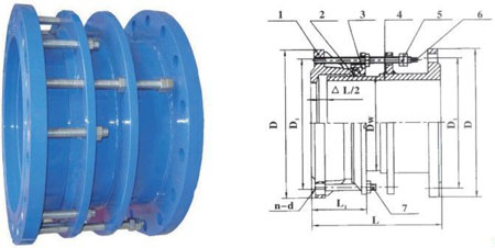 伸縮接頭系列產(chǎn)品屬金屬制品、其有較高的抗拉和抗壓強(qiáng)度,軟密封性能優(yōu)越,安裝拆卸方便等功能,被廣泛應(yīng)用于電力、冶金、化工、給排水和污水處理等行業(yè),主要作用于水泵于閥門和管道之間的連接。雙法蘭限位伸縮接頭在管道運(yùn)行中有一定的多向位移作用,對管道在運(yùn)行中由于熱漲冷縮、地殼下陷和受力產(chǎn)生著重要的伸縮補(bǔ)償作用,因此,伸縮接頭可以緩解管道運(yùn)行中的盲板推力,對管道起到一定的保護(hù)作用,特別是對管道的安裝和維修提供了極大的便利。但是,在水泵出口處和管道轉(zhuǎn)角處,在無固定支墩、無限位支墩和定向限為支墩支架的滑動(dòng)管道連接中應(yīng)采用傳力接頭限位伸縮器(伸縮節(jié))和防拉脫限位橡膠接頭,因?yàn)閭髁宇^通過傳力螺栓(即全絲螺栓)能把啟泵時(shí)的盲板推力傳導(dǎo)到泵和管道各部位,避免推力集中于管道轉(zhuǎn)角處或泵的近端,發(fā)生沖擊力損傷設(shè)備。